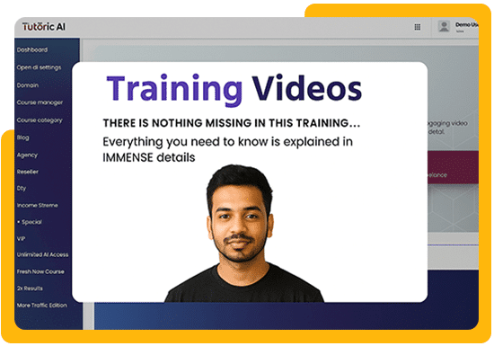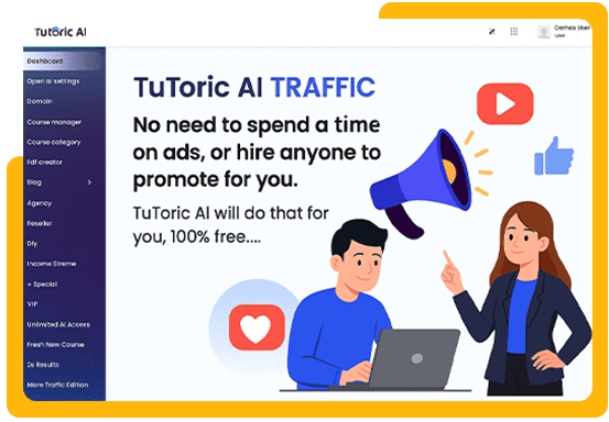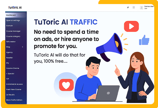 Tutoric AI 2.0 is a software that help you launch your own AI-driven course website in just a minute. With this breakthrough app, you can create sites like Udemy. You do not need any tech skills. You can create high-quality AI-generated courses with help of Tutoric AI 2.0 and start making sales.