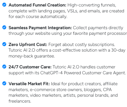 Now a days Online education and online business are growing rapidly. So that, online Courses have become a significant opportunity. Now people are realizing that sharing their knowledge can also be a great way to earn money. Create a course, share it online & reach people worldwide is easier than before now. Recent time course selling is a smart way to make money online. It is also helpful to others learn & grow. Tutoric AI 2.0 Review is bellow