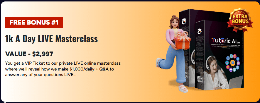 You can get full access to the powerful Tutoric AI 2.0 platform for a one-time price of only $11.97. No monthly fees or hidden costs. This is an unbeatable deal considering the incredible value you’re getting: automated course creation, website builder, traffic generation, funnel setup, and so much more. All done for you by AI.